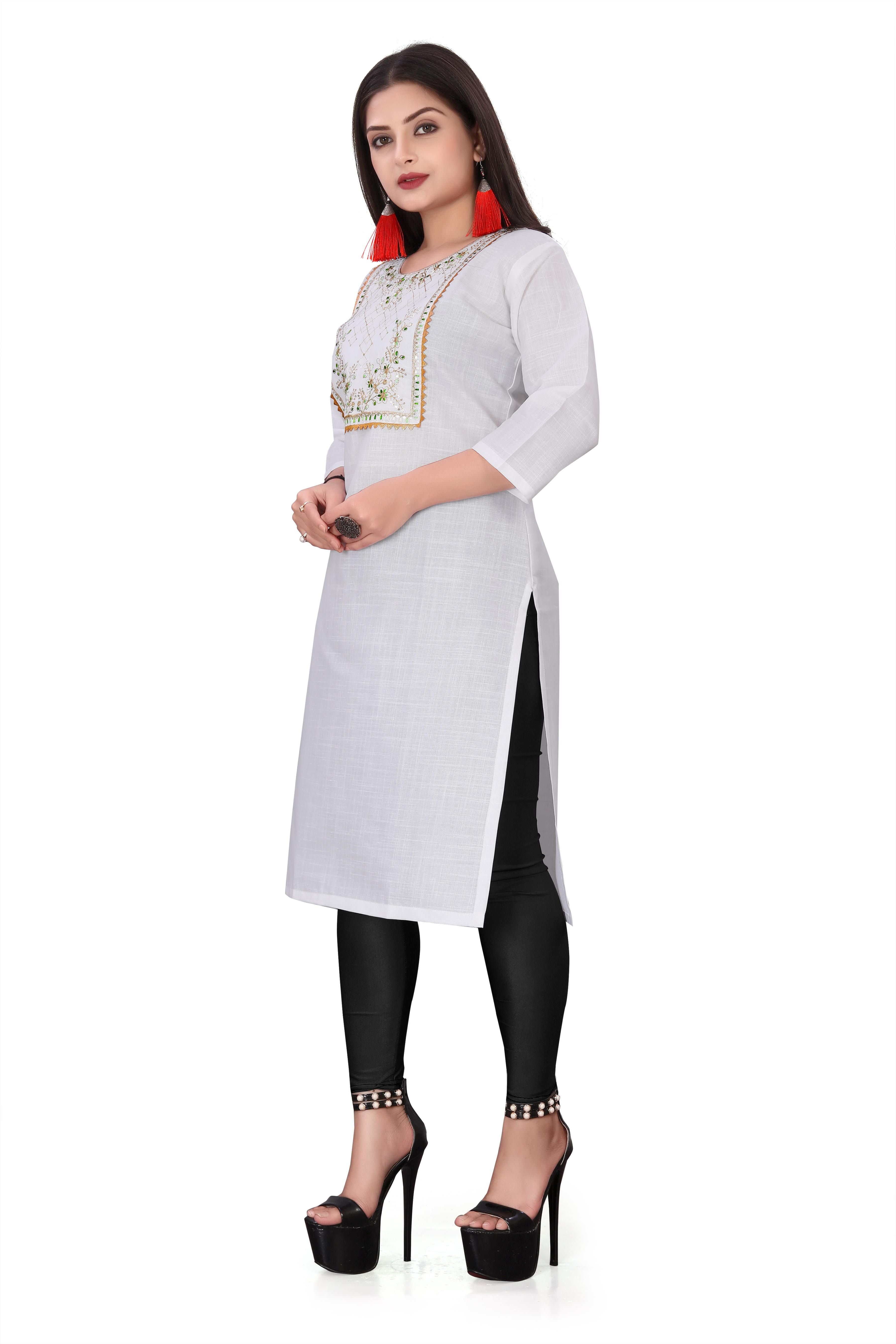 Women's Embroidery Cotton Slub Kurti